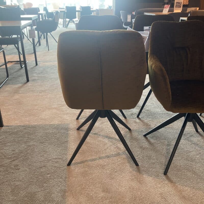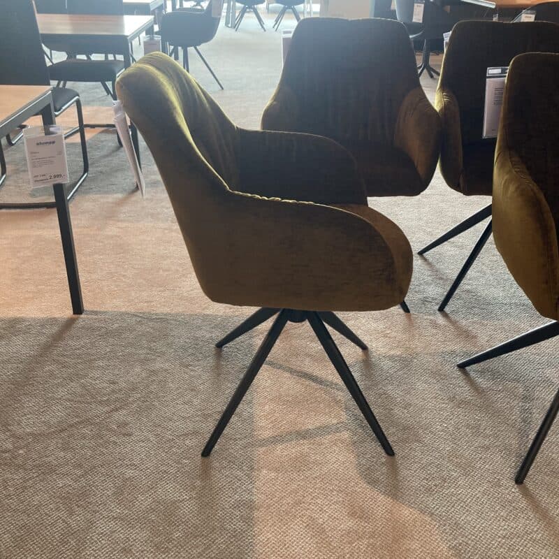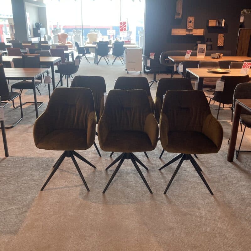 Die Stuhlgruppe Noli von Nouvion vereint Komfort und Design: 6 drehbare Armlehnstühle mit Wippfunktion bieten ergonomisches Sitzen. Der Bezug aus Stoff Loft Army in Pistaziengrün harmoniert perfekt mit dem schwarzen Sparkfuß-Gestell aus Stahl stilvoll, modern und ideal für gesellige Runden. Die Stuhlgruppe kann gerne vor Ort in unserer Ausstellung in Stockach und Lauchringen besichtigt werden.