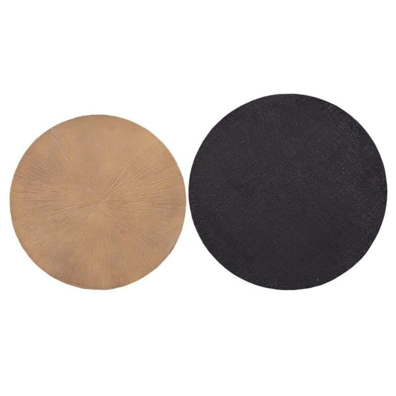 Die runden Tischplatten aus Aluminium, sind farblich unterschiedlich und mit einer spannenden Struktur versehen. In den Farben Kupfer und Messing wirken sie sehr edel und geben Ihrem Wohnbereich das gewisse Etwas. Das Gestell aus pulverbeschichtetem Eisen ist sehr robust und sorgt für einen sicheren Stand.