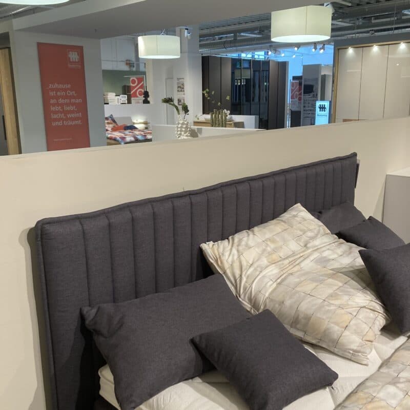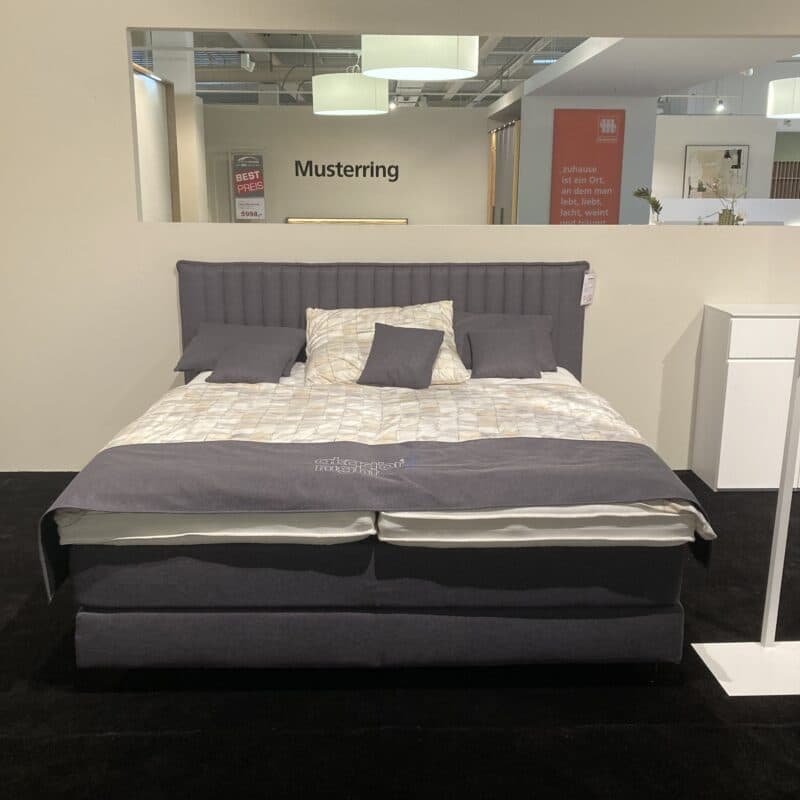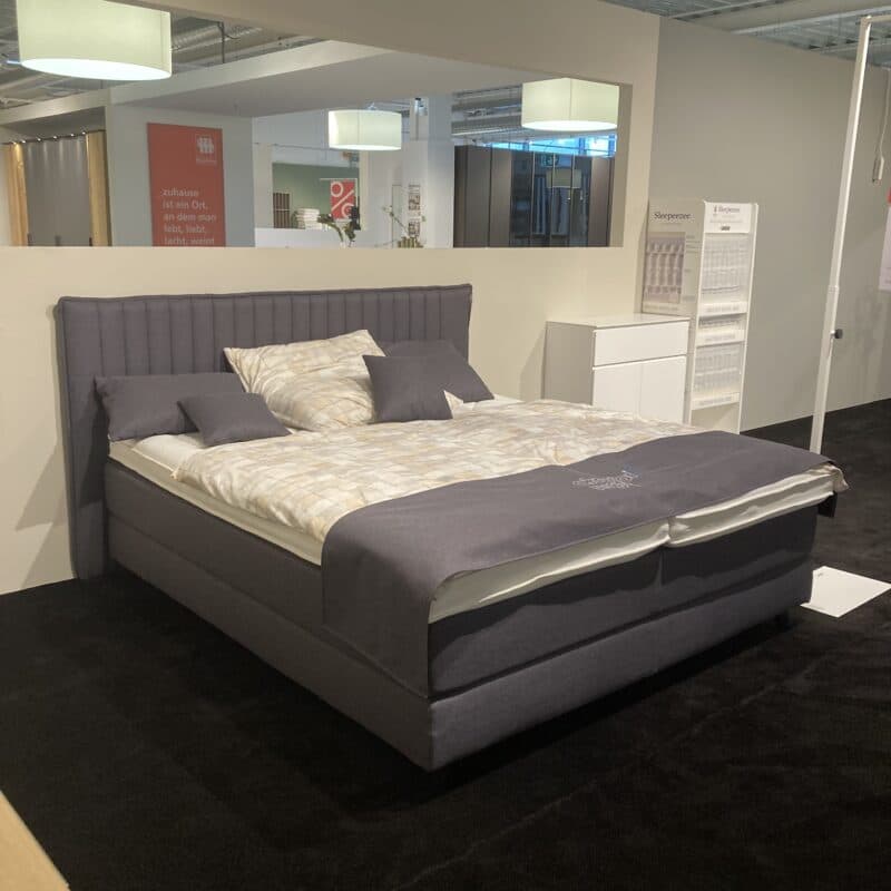 Das Akador Boxspringbett AK Lund vereint Komfort und Eleganz. Mit gepolstertem Kopfteil, Partnermatratze (Härtegrad 2/3), hochwertigen Visco- und Latex-Toppern, doppelt grauem Stoffbezug, schwarzen Holzfüßen und 5-teiligem Kissenset bietet es luxuriösen Schlafkomfort. Inklusive Gelair, Premium-Klettboxhusse und weißem Spiegelstoff-Doppeltuch. Das Boxspringbett kann gerne vor Ort in unserer Ausstellung in Stockach besichtigt werden.