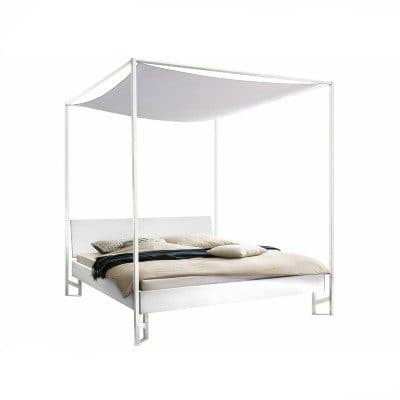 Lieben Sie minimalistisches Design und ein Hauch von Romantik? Wir präsentieren Ihnen das Himmelbett Veluna von Hasena: Es überzeugt mit seinem industriellen Stil und dem klassischen Vela-Himmeltuch in Weiß aus Baumwolle.