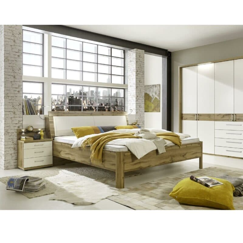 Das Holzdekor der Balkeneiche steht bei LS 871017 im Vordergrund und gibt der klaren Form einen unverwechselbaren Charakter. Die Kombination mit Dekor in Weiß wirkt warm und modern zugleich. Dazu passen die abgerundeten Füße perfekt, denn auch sie verbinden Modernität mit einem warmen Wohngefühl. Das leicht abgeschrägte Kopfteil wurde ergänzt mit einem filigranen Kopfteilpolster in weißem Kunstleder. Dadurch können Sie es sich beim Lesen und Relaxen im Bett so richtig gemütlich machen.