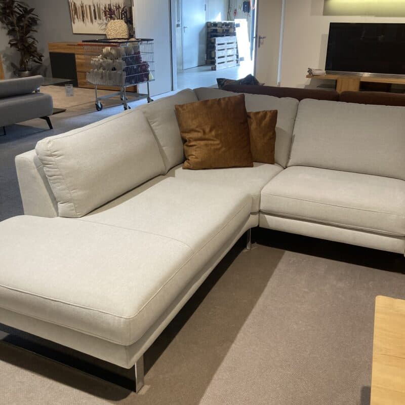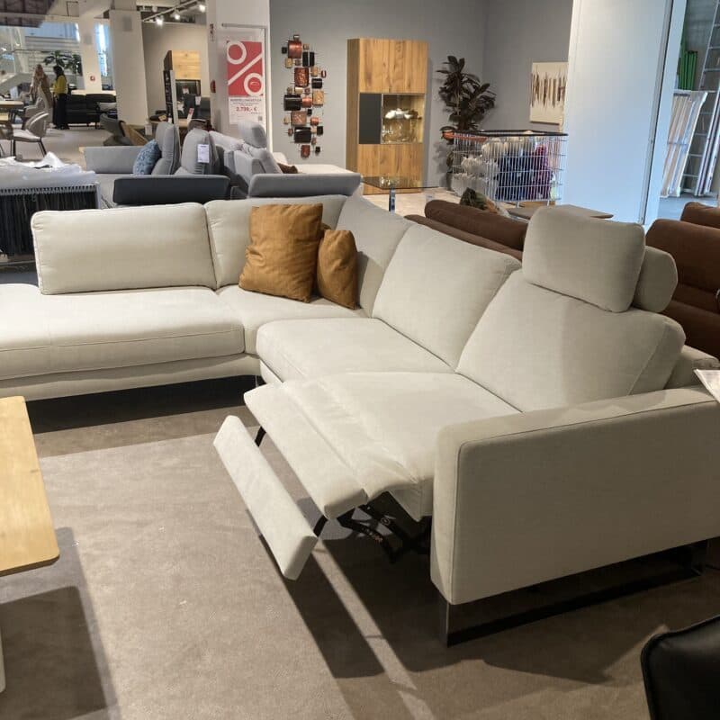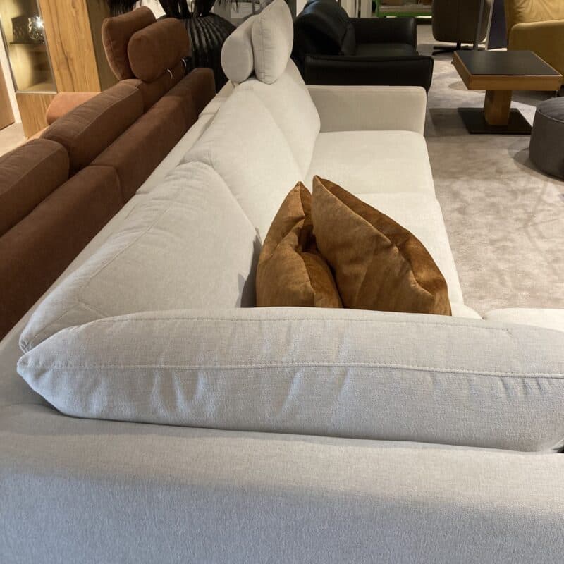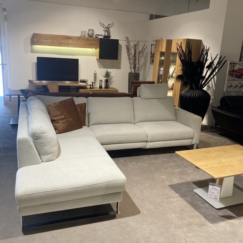 Die Polstergruppe Anna von Comfort Republic vereint modernes Design mit höchstem Komfort. Bezogen mit Stoff Carmen in Naturel und einem eleganten, chromfarbenen Kufengestell, bietet sie motorische Relaxfunktion mit Akku, verstellbare Kopfstützen, drehbares Abschlussteil sowie Taschenfederkern für entspannte Wohlfühlmomente. Die Elementgruppe kann gerne vor Ort in unserer Ausstellung in Stockach besichtigt werden.