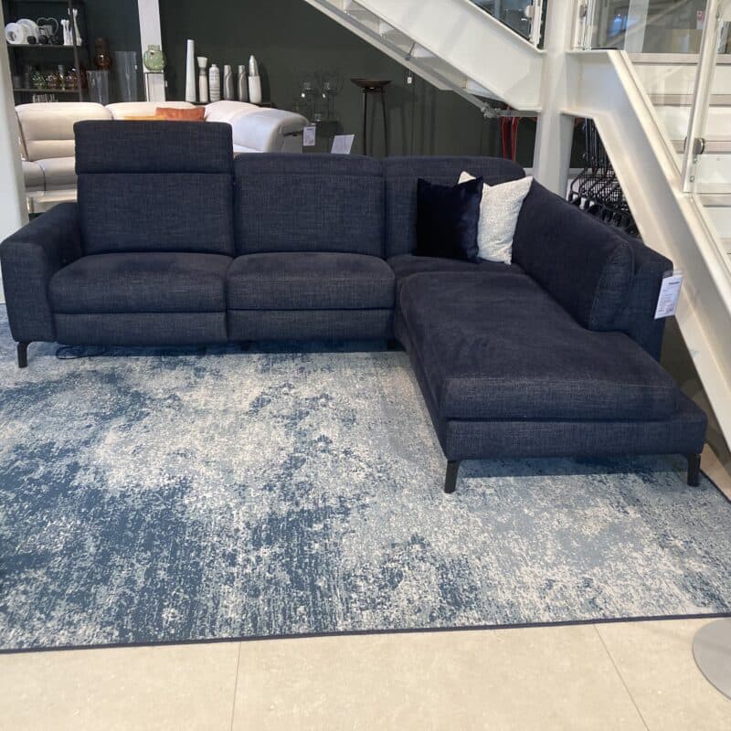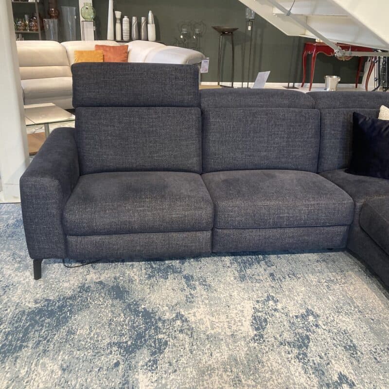 Die Elementgruppe Colorado von Rom bietet höchsten Komfort mit Bultex-Sitzkomfort, motorischer Relaxfunktion und manueller Kopfteilverstellung. Der Stoffbezug in Marine harmoniert mit schwarzen Stahlfüßen. Zwei Kissen in Marine und Beige ergänzen das stilvolle Design. Funktionalität und Eleganz vereint für entspanntes Wohnen. Die Elementgruppe kann gerne vor Ort in unserer Ausstellung in Stockach besichtigt werden.