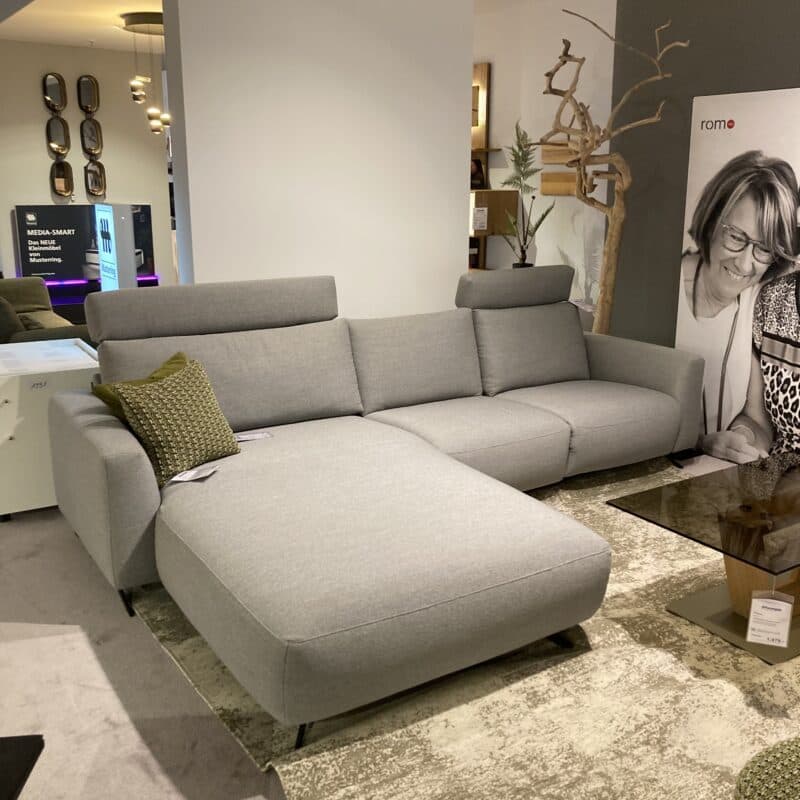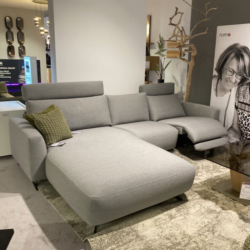 Die moderne Elementgruppe Cosmo von Rom überzeugt mit ihrem eleganten Stoffbezug Aurelio in Silver und Füßen aus schwarz matt lackiertem Stahl. Höchster Komfort durch Viscotex-Sitzpolsterung, motorische Relaxfunktion und manuell verstellbare Kopfteile. Ein stilvolles Highlight für anspruchsvolles Wohnen mit Funktion, Design und Wohlfühlgarantie. Die Elementgruppe kann gerne vor Ort in unserer Ausstellung in Stockach besichtigt werden.