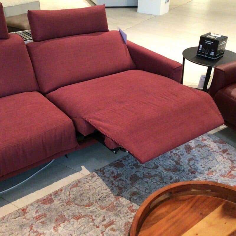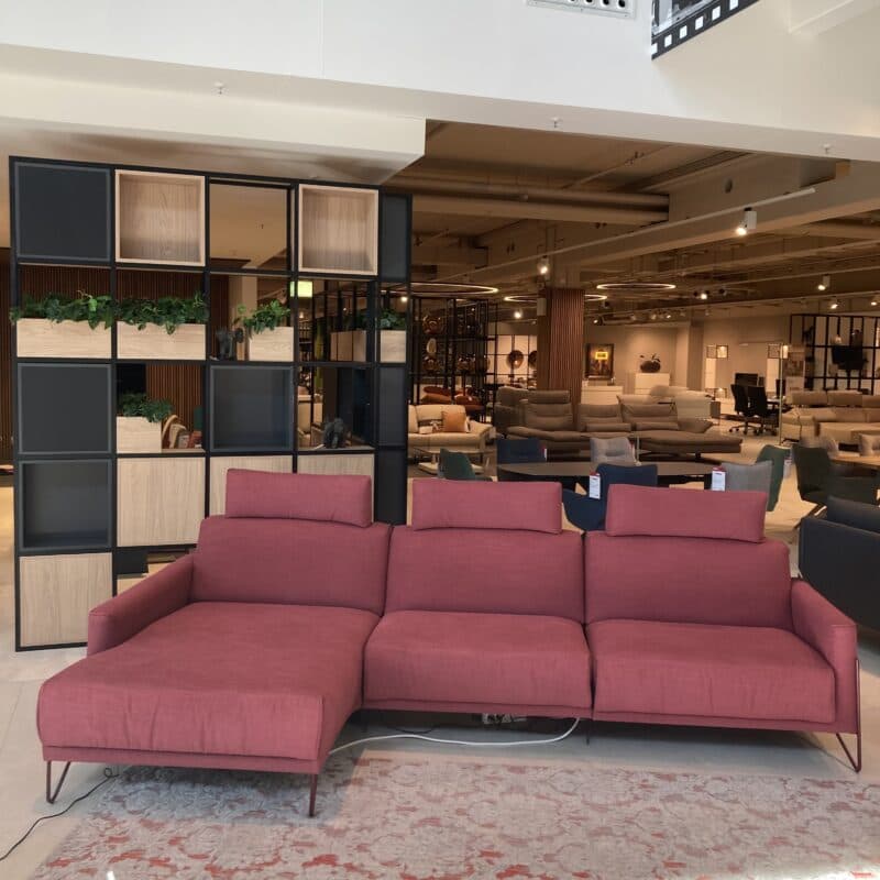Die Elementgruppe Miller von Rom überzeugt mit modernem Design und höchstem Komfort. Der Bezug aus edlem Stoff Nevio in Passion harmoniert perfekt mit den roten Metallfüßen. Dank Sitzkomfort Dynaspring und motorischer Relaxfunktion genießen Sie individuellen Sitzluxus und stilvolle Eleganz in einem exquisiten Möbelstück. Die Elementgruppe kann gerne vor Ort in unserer Ausstellung in Stockach besichtigt werden.