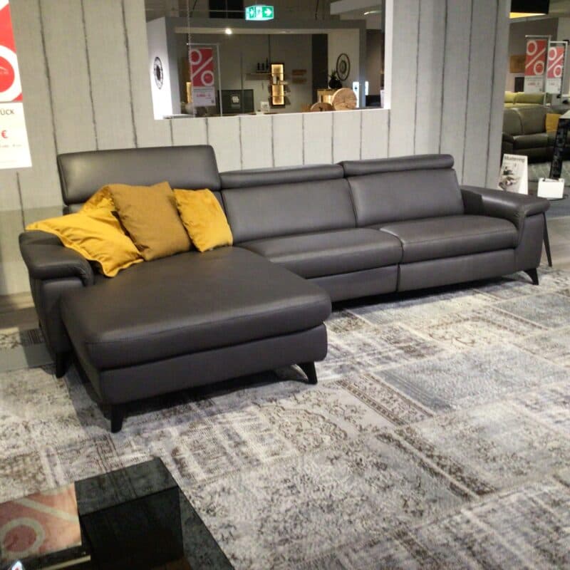 Die schöne Elementgruppe von Steinpol Polsteria besticht durch ihren Bezug aus edlem Leder LLEvita in Anthrazit und Füße aus schwarzem Metall. Sie bietet eine komfortable Vollschaumpolsterung, eine motorische Liege-Relaxfunktion, eine motorische Kopfteilverstellung sowie eine klappbare Armlehne. Inklusive sind drei Kissen für zusätzlichen Komfort. Die Elementgruppe kann gerne vor Ort in unserer Ausstellung in Stockach besichtigt werden.