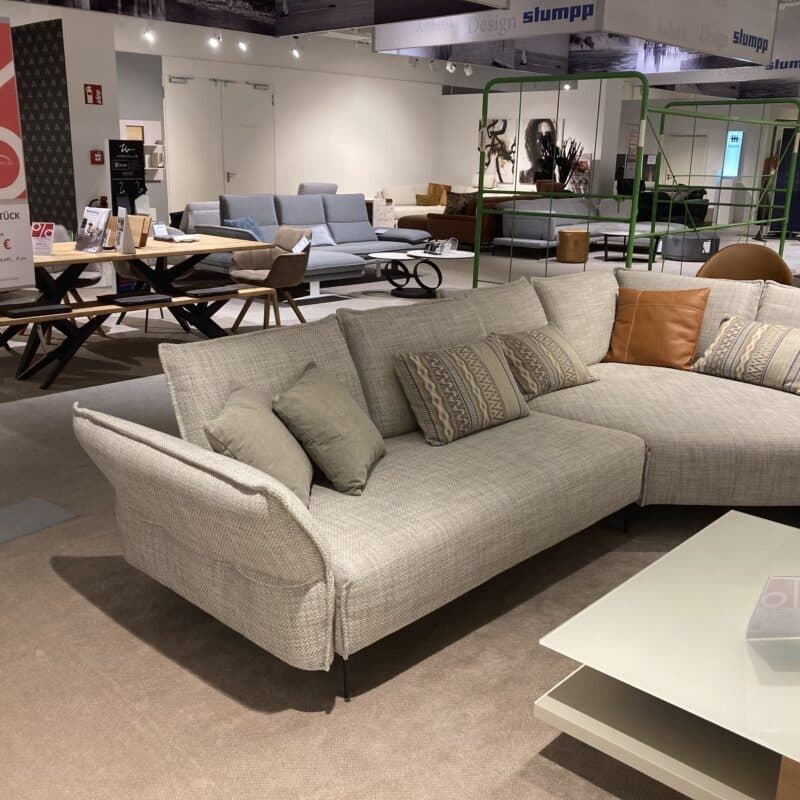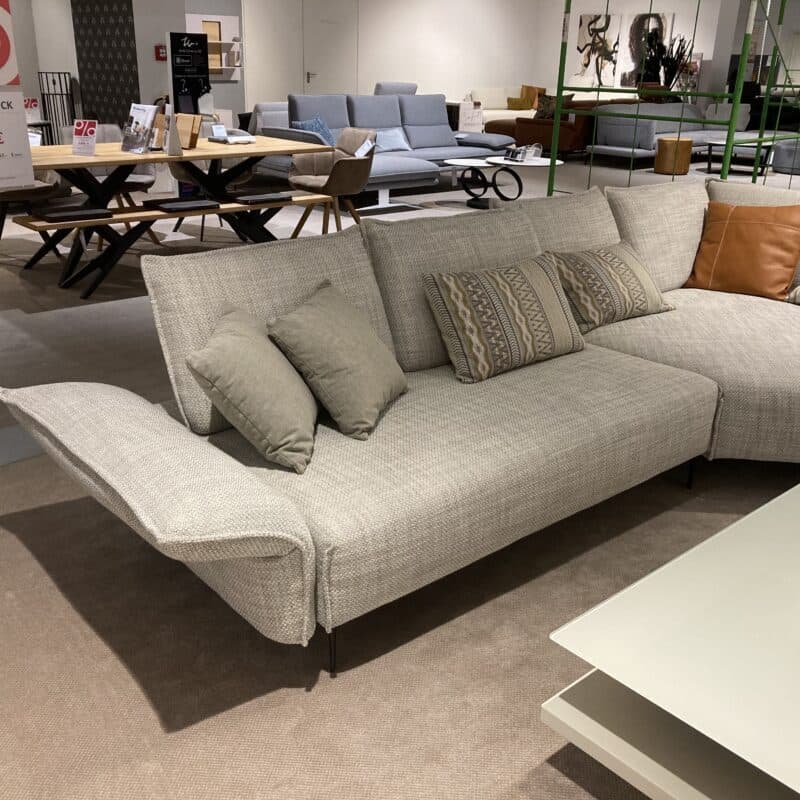 Die Elementgruppe Wenzel von Willi Schillig vereint modernes Design mit Funktionalität. Bezogen mit hochwertigem Stoff in Silver Grey und eleganten schwarzen Metallfüßen. Sitztiefenverstellung sorgt für individuellen Komfort. Inklusive 6 Kissen in verschiedenen Größen und Materialien – perfekt für stilvolles, gemütliches Wohnen. Die Elementgruppe kann gerne vor Ort in unserer Ausstellung in Stockach besichtigt werden.