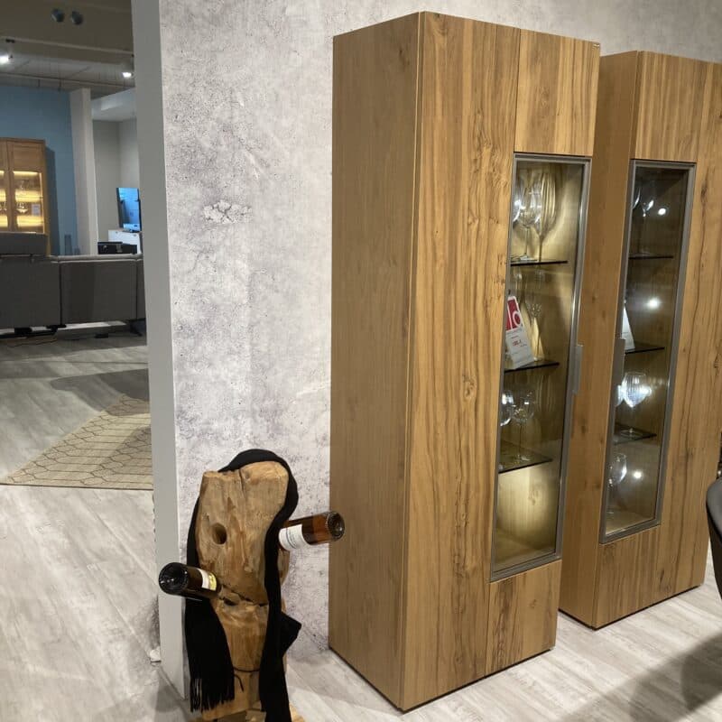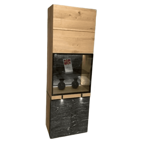 Besonders kennzeichnend für die Serie Vmontanara ist das natürliche wirkende Spaltholzdesign. Der Look wird durch die Kombination mit Elementen aus hochwertigem Glas abgerundet.