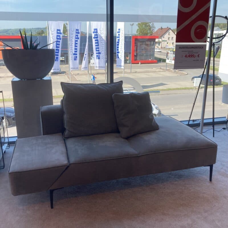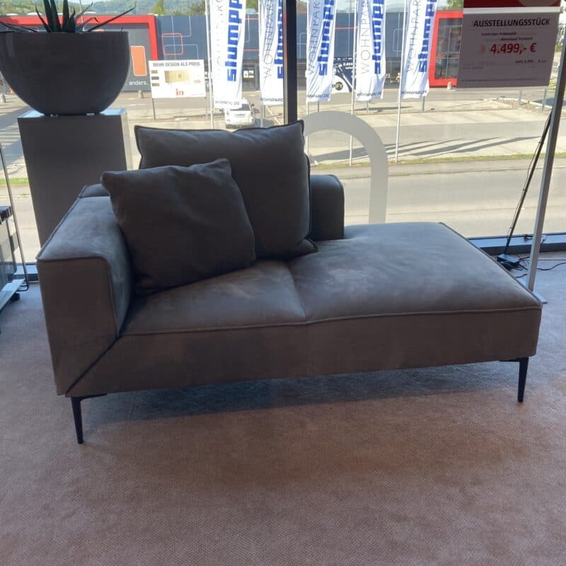 Das Anbausofa Landscape von Jori überzeugt durch elegantes Design und höchste Qualität. Bezogen mit edlem Nubuckleder in Anthrazit bietet es eine abklappbare Armlehne links, ein schwarzmattes Metallgestell und zwei komfortable Kissen. Ideal für stilvolle Wohnräume mit modernem Anspruch und maximalem Komfort. Das Anbausofa kann gerne vor Ort in unserer Ausstellung in Stockach besichtigt werden.
