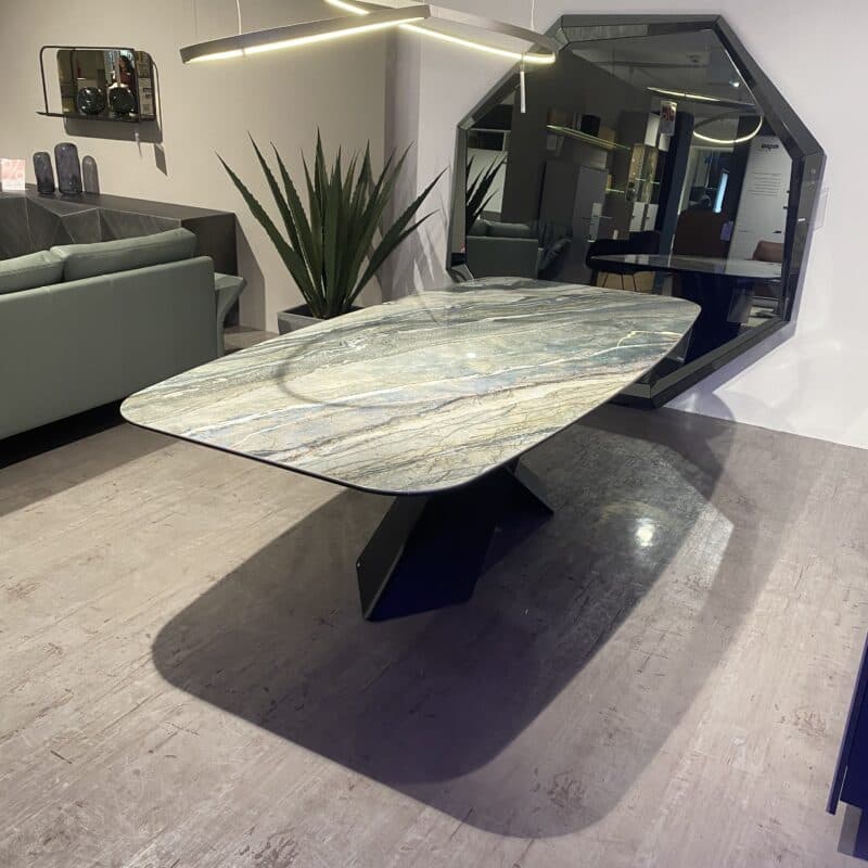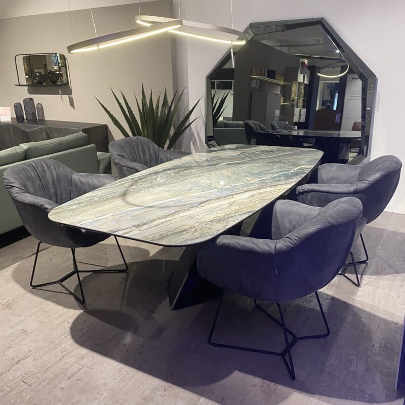 Der Esstisch Tyron von Cattelan Italia beeindruckt mit seinem eleganten Gestell aus schwarz gaufriertem Metall und einer edlen Keramikplatte KM16 Kaindy. Das harmonische Zusammenspiel von Design und Funktionalität verleiht jedem Essbereich modernen Luxus und zeitlose Eleganz – ein exklusives Statement italienischer Handwerkskunst. Der Esstisch kann gerne vor Ort in unserer Ausstellung in Lauchringen besichtigt werden.