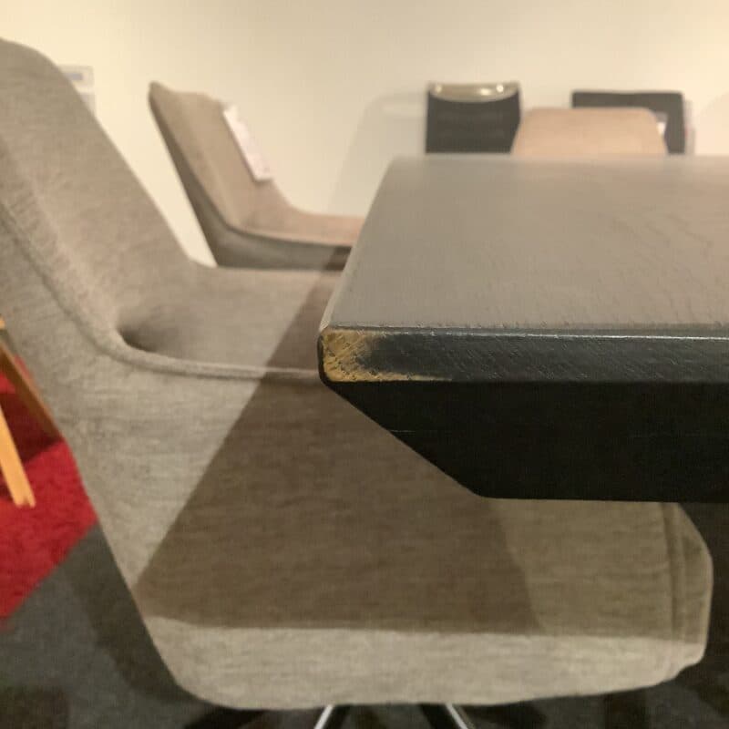 - Tischplatte aus Eiche massiv in Lack Schwarz mit Schweizer Kante