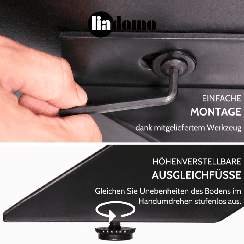 Das Gestell ist aus Metall gefertigt und in Schwarz lackiert verfügbar. Sie haben die Wahl zwischen der U-Form, der X-Form oder einem eleganten Spider-Gestell. Alle Gestelle sorgen nicht nur für einen stabilen Stand, sondern verleihen diesem Tisch auch im Zusammenspiel mit dem Akazienholz den modernen Industrie-Look.