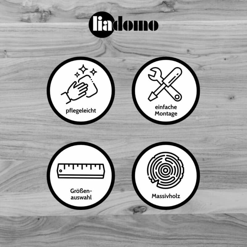 Akazienholz ist bekannt für seine außergewöhnliche Härte und Widerstandsfähigkeit. Das bedeutet für Sie: Ihr Tisch bleibt über viele Jahre hinweg formstabil, robust und leicht zu pflegen. Ein leicht feuchtes Tuch genügt, um die Oberfläche sauber zu halten – so bleibt der natürliche Glanz lange erhalten.