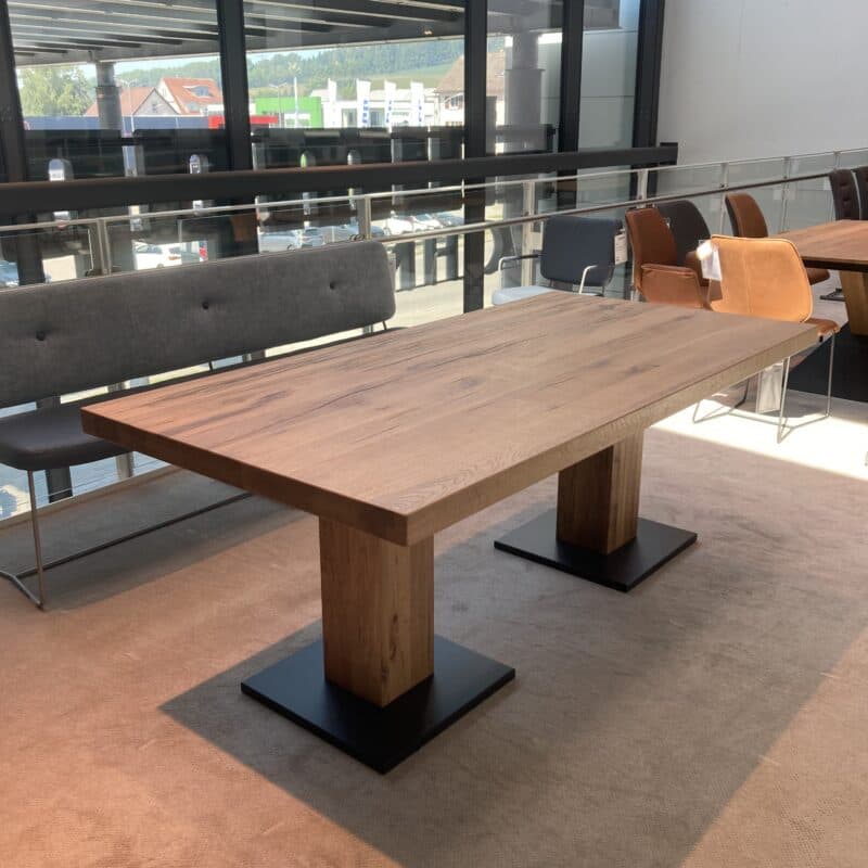 - Gestell aus Balkeneiche massiv und Metall in Schwarz