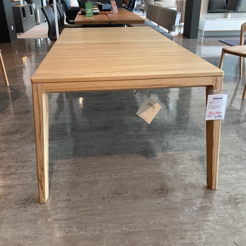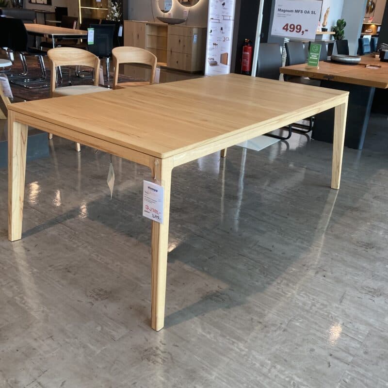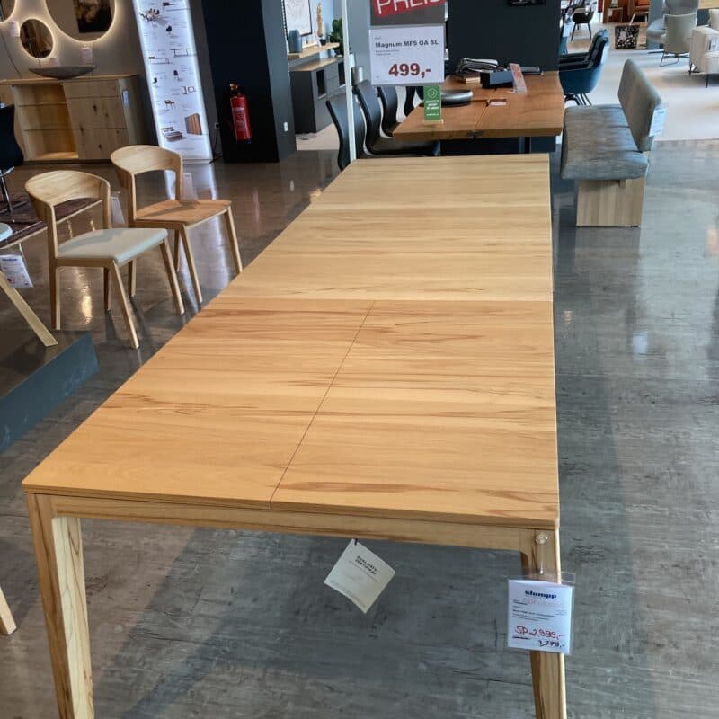 Moderner Auszugstisch von Team 7 in edler Kernbuche mit Naturöl-Finish – zeitlos und funktional. Die integrierte Einlegeplatte ermöglicht flexible Größenanpassung für gesellige Runden. Hochwertige Verarbeitung und natürliches Design machen diesen Tisch zum stilvollen Mittelpunkt jedes Essbereichs. Nachhaltig, robust und elegant zugleich. Der Auszugstisch kann gerne vor Ort in unserer Ausstellung in Stockach besichtigt werden.