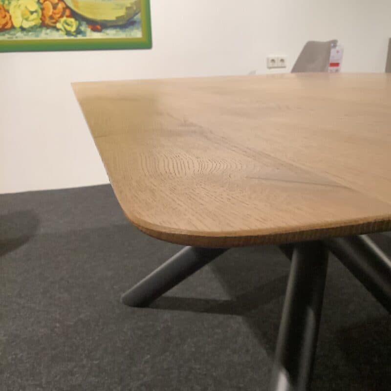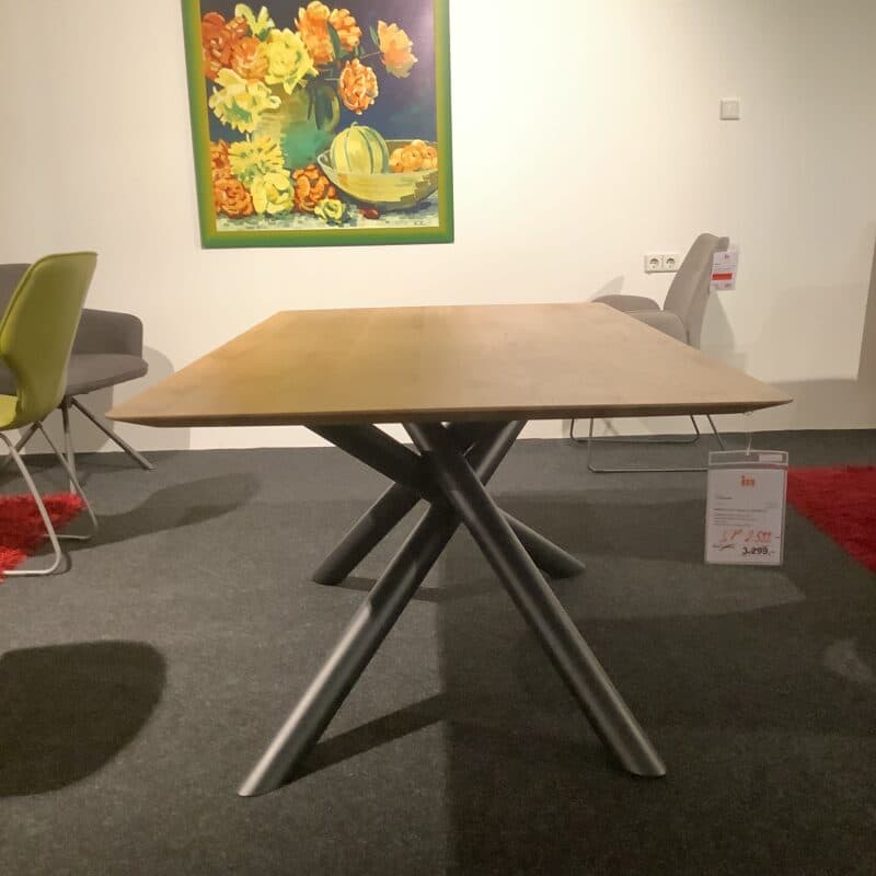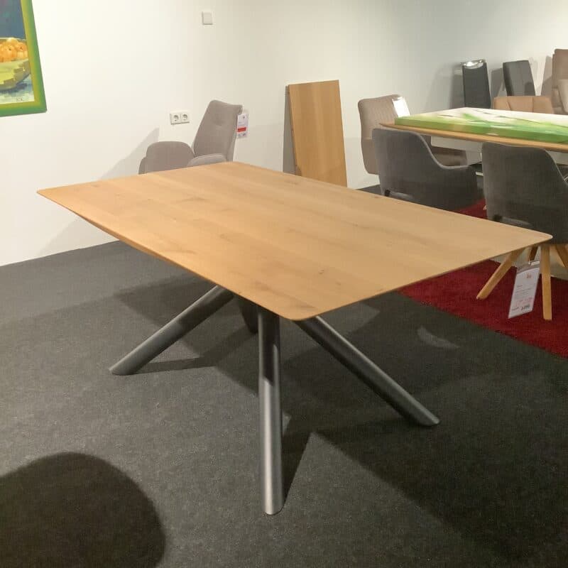 Der Esstisch WK852-3 von WK-Wohnen verbindet natürliche Eleganz mit moderner Formensprache. Die massiv geölte Wildeichenplatte bringt Wärme in den Raum, während das schwarze Metall-Kreuzgestell für Stabilität und einen markanten Look sorgt. Ein stilvoller Mittelpunkt für jedes Esszimmer mit hochwertiger Verarbeitung und zeitlosem Design. Der Esstisch kann gerne vor Ort in unserer Ausstellung in Stockach besichtigt werden.