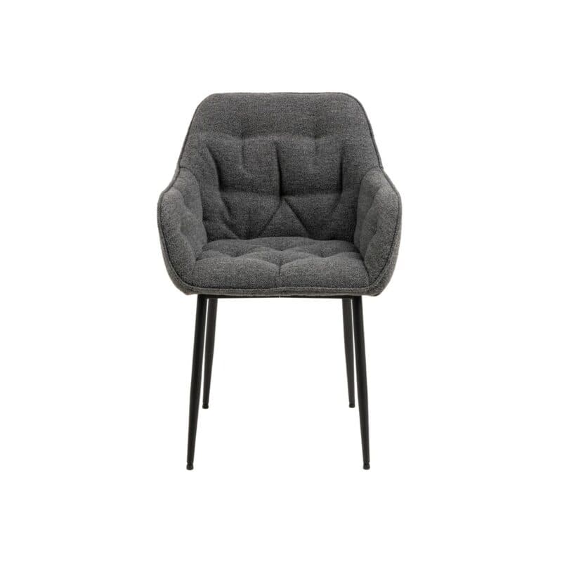 Der Polsterstuhl Alisha besticht ganz klar mit seinem eleganten aber modernem Design. Schwarze Beine aus Metall in Kombination mit grob strukturiertem Bouclé Bezug ergeben ein besonders stimmiges Gesamtbild. Rücken und Sitz sind außerdem mit einer schönen Rautensteppung verziert, was dem Stuhl einen leicht romantischen Touch gibt. Die bequeme Polsterung sowie die Armlehnen sorgen für ein angenehmes Sitzgefühl. Denn schließlich darf auch der Komfort nicht zu kurz kommen.