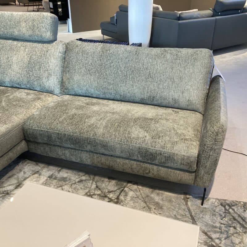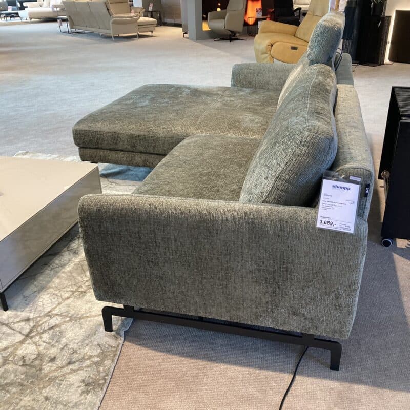 Die Enna Elementgruppe vereint stilvolles Design und höchsten Komfort. Der Bezug aus Stoff harmoniert mit schwarzen Metallfüßen. Beide Elemente verfügen über motorische Relaxfunktionen, verstellbare Kopfstützen, Sandwich-Sitzkomfort und einen – für entspannte Momente in zeitloser Eleganz. Die Elementgruppe kann gerne vor Ort in unserer Ausstellung in Stockach besichtigt werden.
