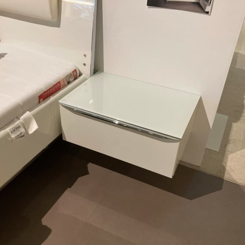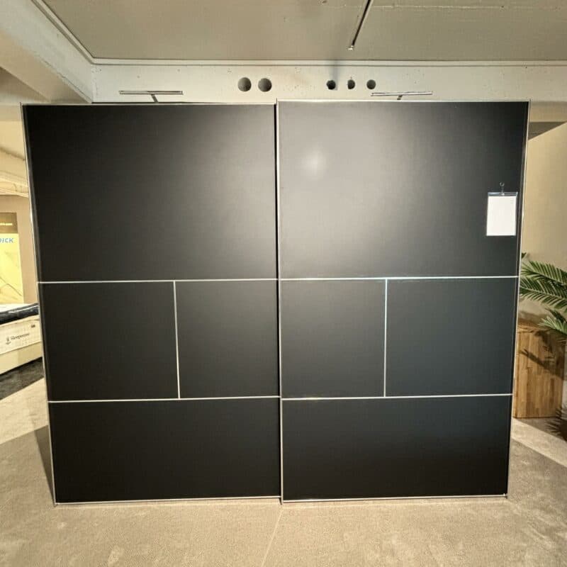 Das Schlafzimmerprogramm von Hülsta Metis überzeugt mit zeitlosem Design und hochwertiger Verarbeitung. Der Schiebetürenschrank in Schwarzglas matt mit Chromgriffen bietet edle Eleganz. Das weiße Hochglanzbett mit LED-Seitenbeleuchtung und zwei Hängekonsolen mit Schubladen, LED-Aufbauleuchten sowie dimmbarem Ambientelicht schaffen stilvolles Wohlfühlambiente.Die Vorzugskombination kann gerne vor Ort in unserer Ausstellung in Stockach besichtigt werden.
