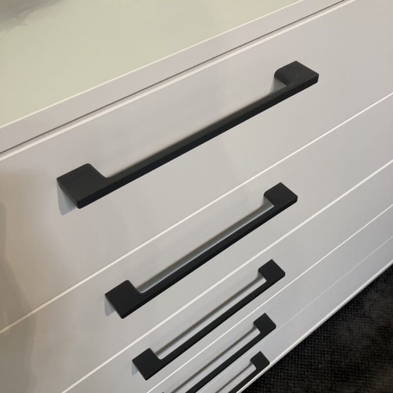 - Eckige Griffe aus mattem Anthrazit