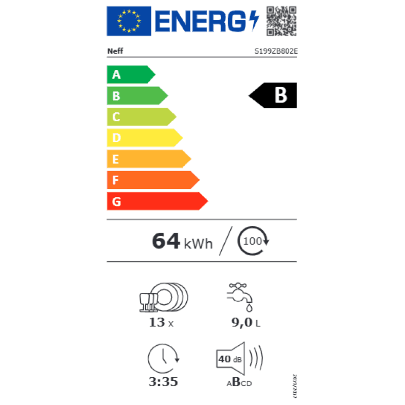 - Neff S199ZB802E Geschirrspüler EEK: B (Skala A bis G)
