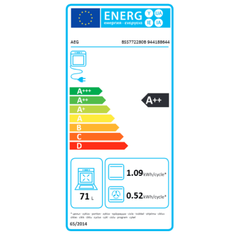 - AEG BSS772280B Einbaubackofen EEK: A++ (Skala A+++ bis D)