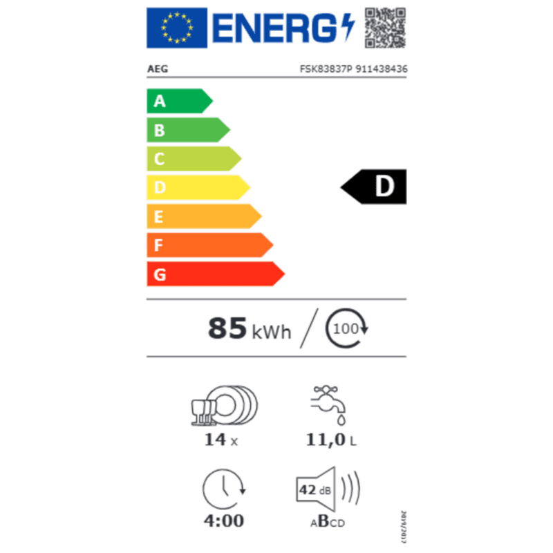 - AEG FSK83837P Einbau-Geschirrspüler EEK: D (Skala A bis G)