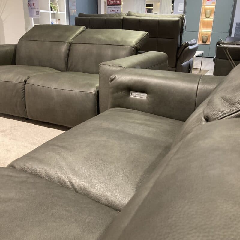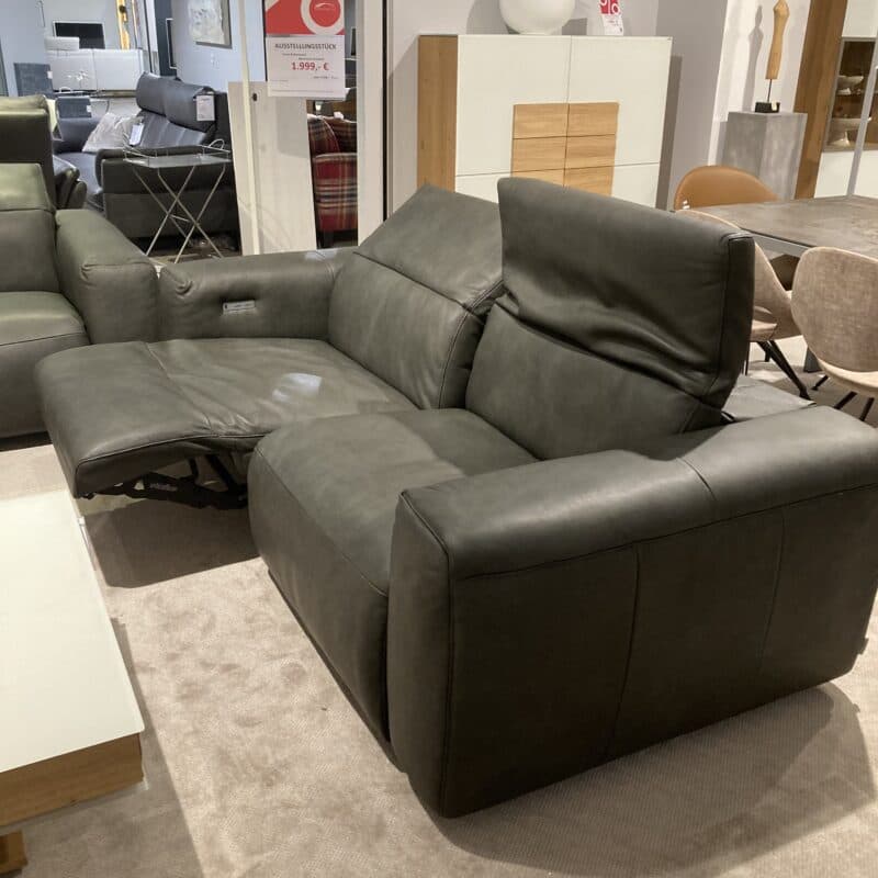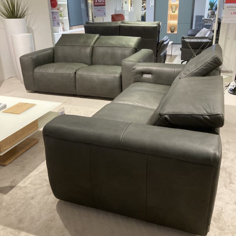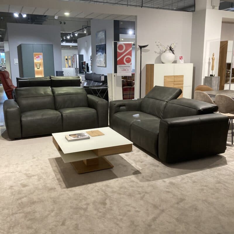 Die hochwertige Polstergruppe Comit von Willi Schillig bietet maximalen Komfort in modernem Design. Bezogen mit edlem Leder in Anthrazit, legerem Sitzkomfort und schwarzen Kunststoffgleitern. Ein 2-Sitzer mit elektrischer Verstellung von Kopfstütze, Sitzfläche, Rücken und Fußstütze, der zweite mit manueller Kopfteilverstellung – durchdacht und elegant. Die Polstergruppe kann gerne vor Ort in unserer Ausstellung in Stockach und Weil am Rhein besichtigt werden.