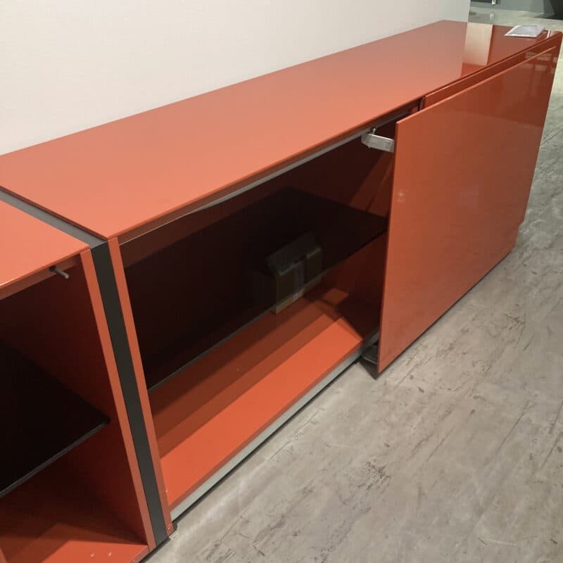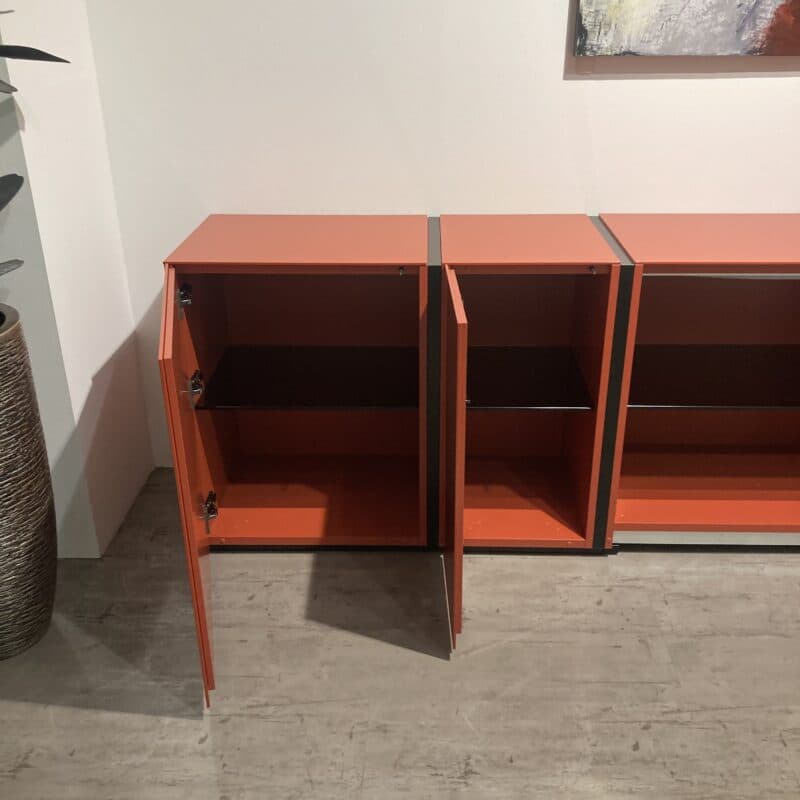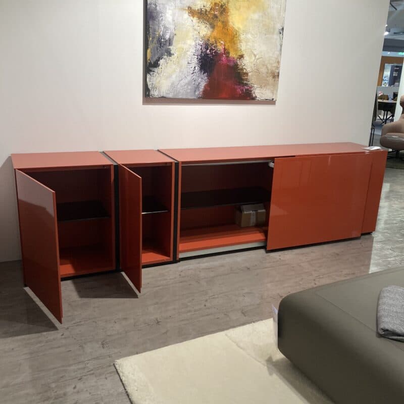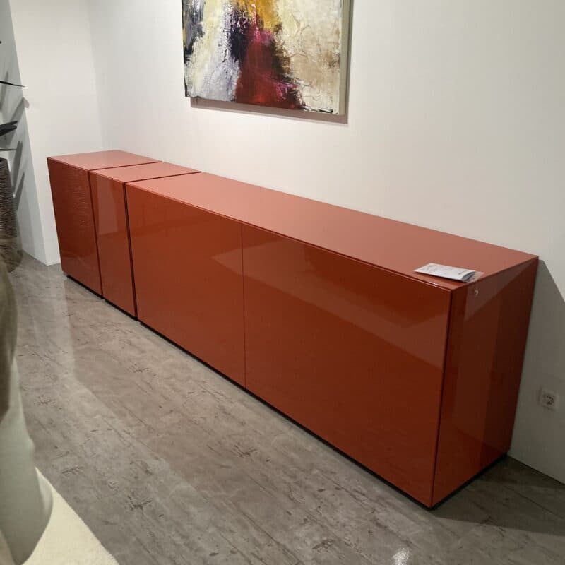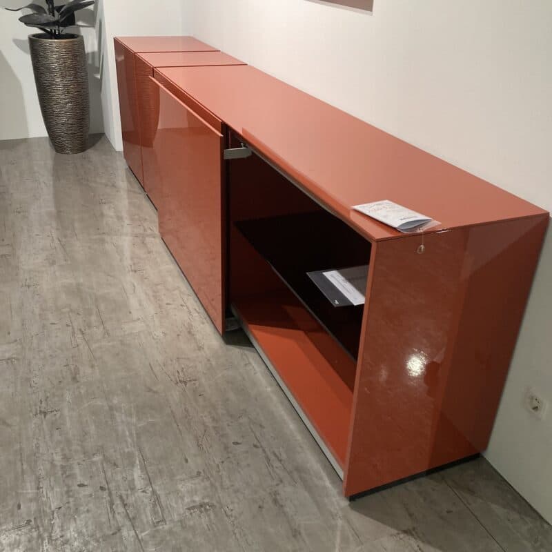 Das Kettnaker Sideboard Alea begeistert mit einem matt lackierten Korpus in Koralle und hochglänzenden Fronten. Quick-On-Beschläge, Holzschiebetür, Sockel-, Abdeck– und Fugenplatte sowie ein klarer Rauchglas-Fachboden vereinen sich zu einer eleganten, funktionalen Lösung für modernes Wohnen. Sie bietet hochwertige Verarbeitung und flexible Kombinationsmöglichkeiten für anspruchsvolle Wohnkonzepte im täglichen Einsatz mit Stil. Das Sideboard kann gerne vor Ort in unserer Ausstellung in Stockach besichtigt werden.