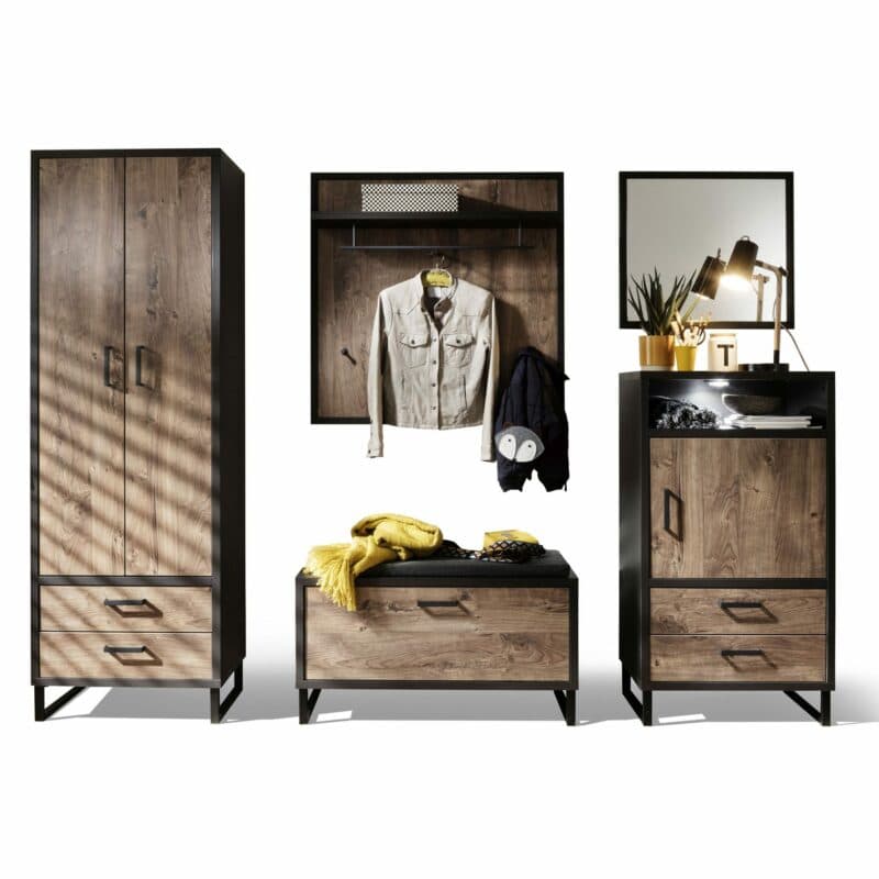 Gehören Sie auch zu den Menschen, die noch einen letzten Blick in den Spiegel werfen, bevor sie das Haus verlassen? Dann ist der Wandspiegel Marianka perfekt für Sie. Der Spiegel gehört zum gleichnamigen Garderobenprogramm und besticht mit einem Korpus aus Cosmos Grey Melamin Nachbildung und einer Front Eiche Barrique Nachbildung. Somit entsteht in Ihrem Eingangsbereich ein cooler und einladender Look!