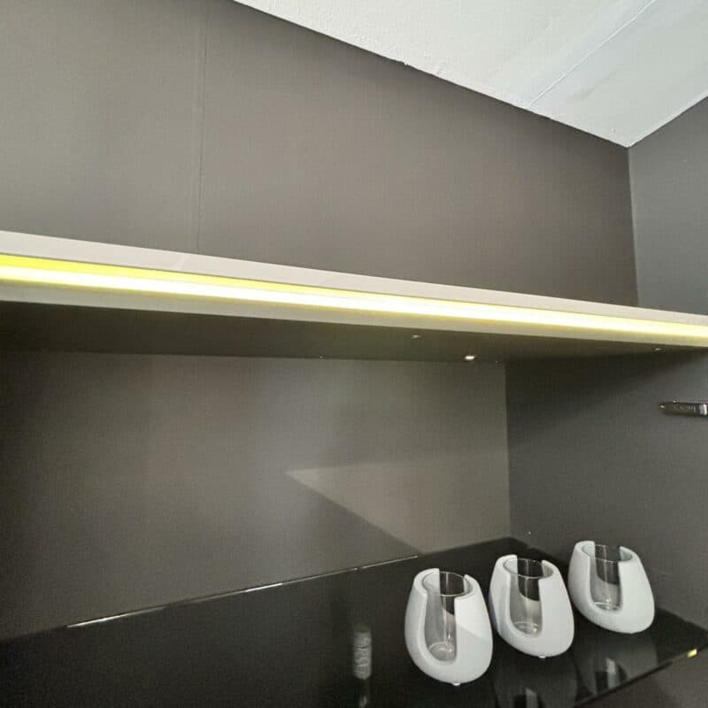 Die moderne Vitrine von Joop aus der Serie Gloss Curves besticht durch ihren kristallgrau lackierten Holzkorpus, schwarze Metallfüße und eine elegante schwarze Glastür. Sie verbindet stilvolles Design mit Funktionalität und verleiht jedem Raum eine zeitlose, elegante Note. Ideal für moderne Wohnräume. Die Vitrine kann gerne vor Ort in unserer Ausstellung in Lauchringen besichtigt werden.